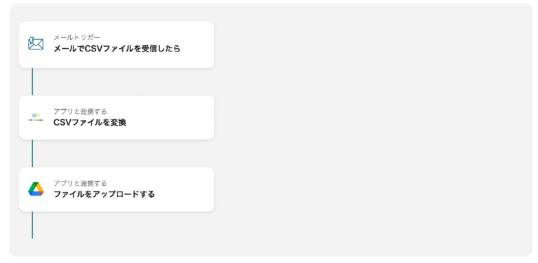 1.メールの添付ファイル(CSV)をHRデータワープで変換し、変換結果をGoogleドライブに保存