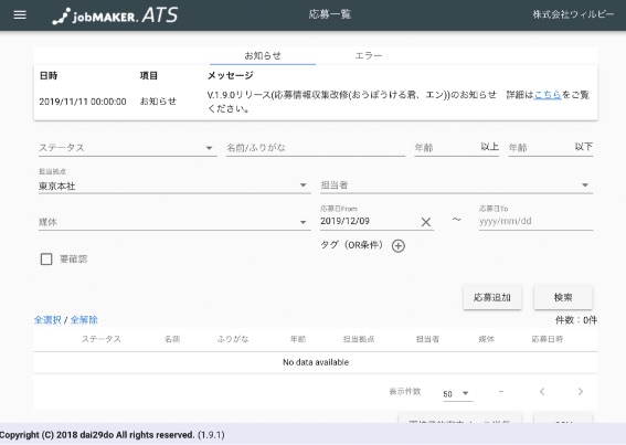 jobMAKER ATSは複数の求人媒体間での応募状況を一元管理できる採用管理システムです。